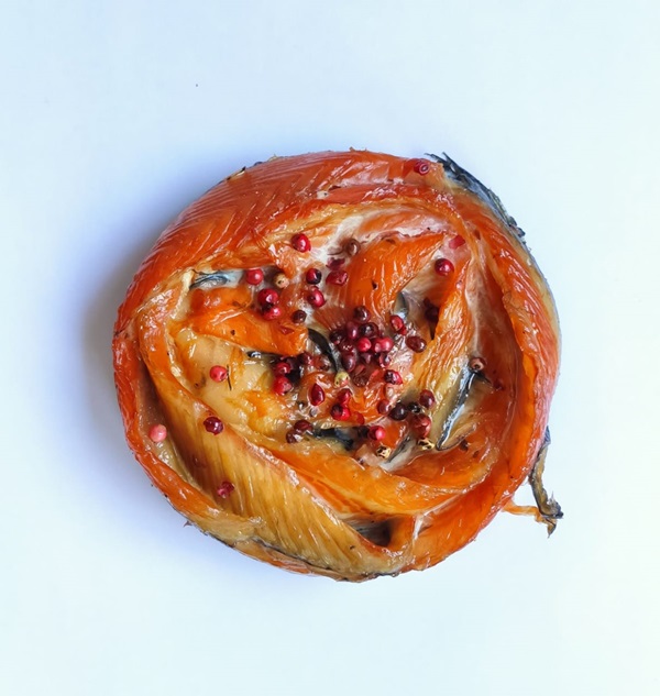 Вкус и текстура Нежные рулеты семги горячего копчения из хребтов поражают насыщенным ароматом дымка и ярким вкусом натуральной рыбы. Мраморная структура мяса при плавном прожевывании раскрывает плотные мягкие волокна, а лёгкая сладость и тонкие сливочные ноты дополнительно подчёркивают премиальное качество.