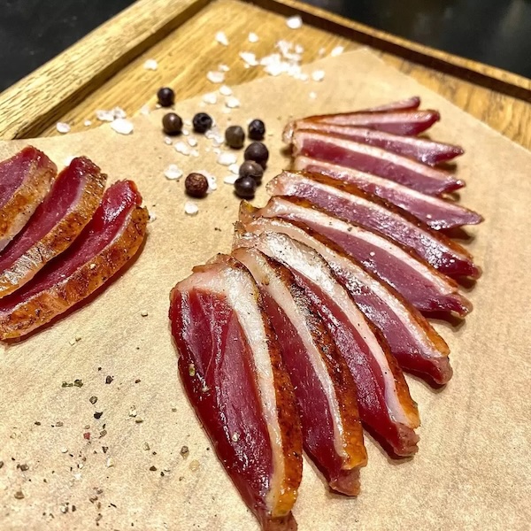 Бархатистая текстура и нежная сочность подчеркиваются выразительным ароматом благородного дыма. Вкус сбалансирован: слегка сладковатые ноты утиных жиров гармонируют с пикантной пряностью и лёгкой солоноватостью, создавая глубокий букет ощущений.